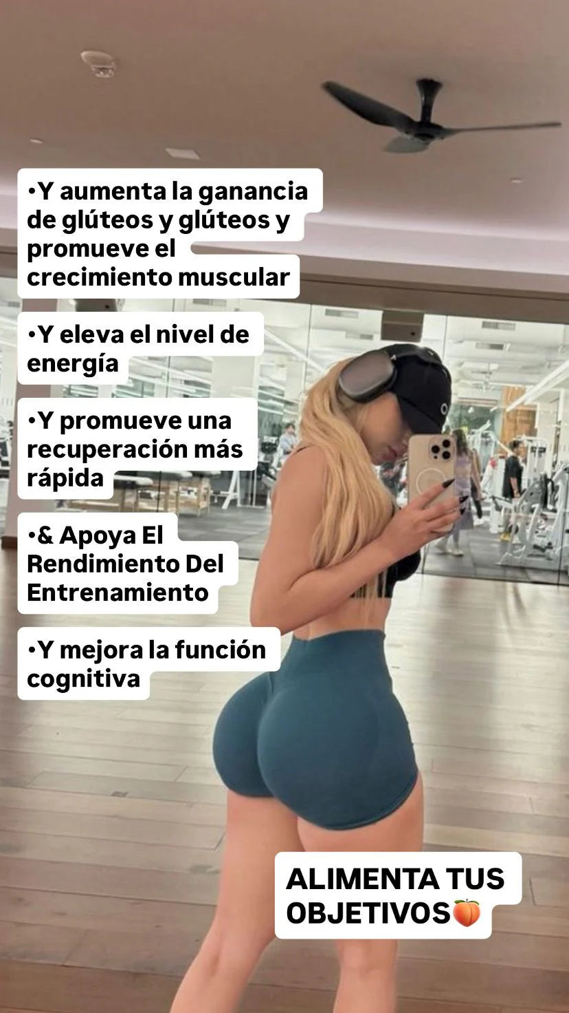 Este suplemento está diseñado específicamente para ayudar a aumentar el volumen y la firmeza de los glúteos, sin causar aumento ni retención de líquidos.