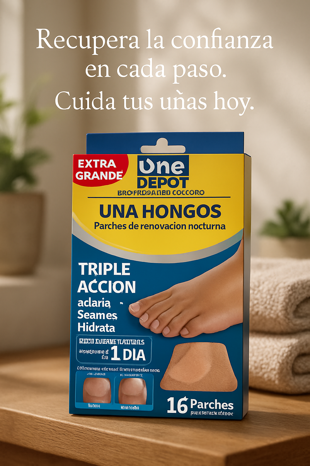 Además de combatir los hongos, los parches contienen ingredientes que ayudan a restaurar la hidratación de la uña, evitando que se vuelva quebradiza o se deforme.