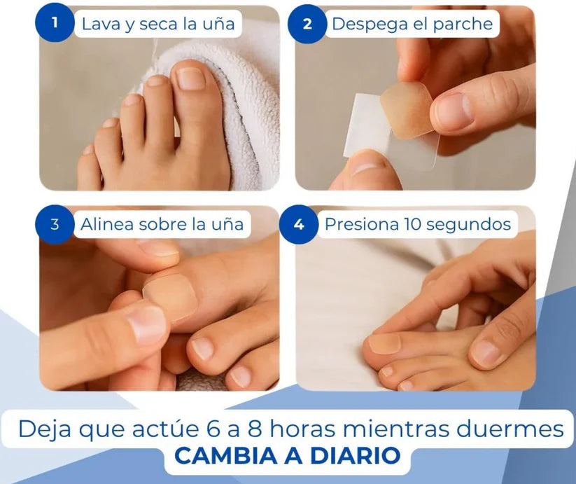 Los parches contienen ingredientes antifúngicos que penetran en la uña y la piel, atacando directamente los hongos y evitando que se sigan propagando.
